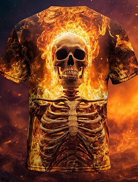 Homens 3D impressão 3D Labareda Esqueleto Camiseta Manga Curta Camiseta Impressão 3D Gola Redonda Camisa Exagerado Designer Terror Festa Rua Feriado Laranja 3 Laranja Laranja 2 Verão Primavera Todas
