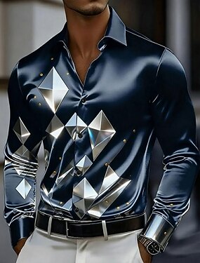 Homens Geométrica Grade / xadrez Vidro Camisa Social Blusa de cetim Saia Manga Longa Business casual Férias Dia a Dia Verão Primavera Outono Aberto para a Lateral Impressão 3D Camisas de botões