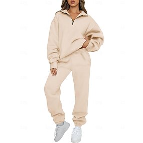 Mulheres Moletom Sherpa Calças de lã Conjunto de moletons calças Manga Longa Gola Redonda Côr Sólida Letra Quente Ao ar livre Preto Vermelho Castanho Claro Primavera Superdimensionado