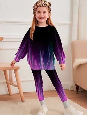 Para Meninas 3D Gráfico sereia Roupa Esportiva Fatos de treino Conjunto de moletom e calça flare Manga Longa Primavera Outono Diário Casual Infantil 4-12 anos Gola Redonda Ao ar livre Férias Esportes