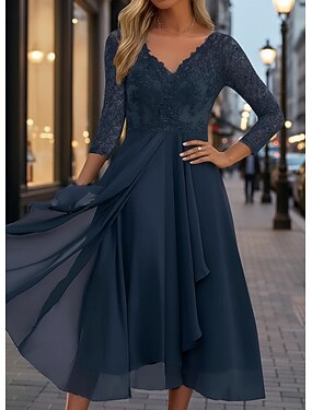 Mulheres Vestido midi Vestido de renda Vestido casual Vestido de chiffon Vestido Swing Roupa de rua Casual Férias Rua Feriado Normal Manga 3/4 Decote V Azul Verde Verão