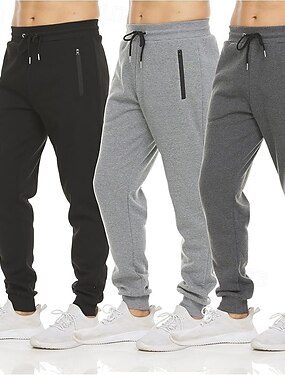 Conjunto de 3 peças de calça de moletom masculina, calça jogger, calça casual, calça com cordão, cintura elástica, bolso com zíper, lisa, respirável, com absorção de umidade, comprimento total,