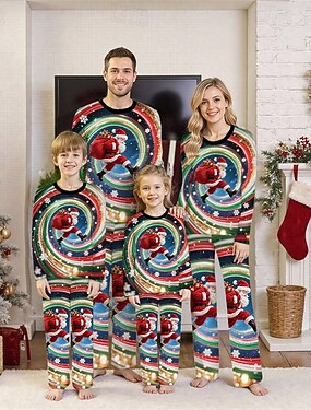 Olhar de família Natal Pijama de Natal para a Família Pijamas Conjuntos de família Gráfico Papai Noel Floco de Neve Presentes de Natal Imprimir Vermelho Manga Longa Diário Roupas Combinando