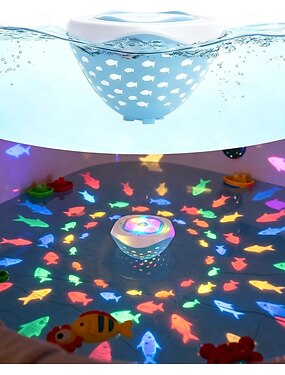 Luz flutuante para piscina com estampa de peixes coloridos, ideal para brinquedos de banheiro, aquários e diversas decorações de festa (alimentada por 3 pilhas AAA, não inclusas).