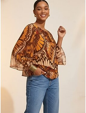 top de chiffon fluido com camadas e estampa de borboleta da selva