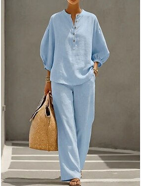 Mulheres Camisa Waffle Camiseta Waffle Camiseta Waffle Lounge Camiseta Botões Côr Sólida à moda Casual Manga 3/4 Gola Redonda Tops regulares Diário Azul Roxo Laranja Cáqui Primavera Outono