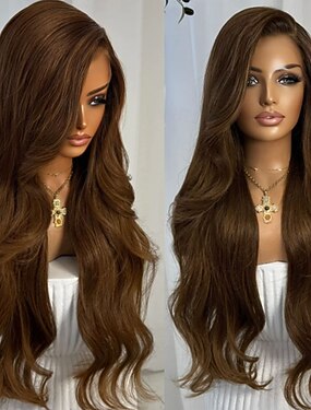 Peruca de cabelo humano virgem brasileiro 100%, com fecho de renda 5x5 e frontal de renda 13x4, nas cores preto e castanho escuro, com baby hair, linha capilar natural e sem cola. Ideal para mulheres.