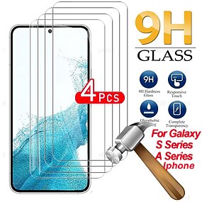 4 Pças. Protetor de tela Para Samsung Galaxy S25 Ultra S25 Ultra Plus S24 Ultra Plus S23 S22 S21 S20 Plus Ultra A35 5G Vidro Temperado Dureza 9H Anti-bolhas Anti Impressão Digital Alta Definição (HD