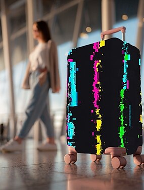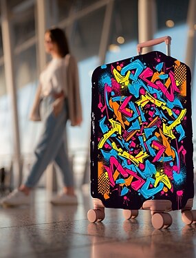 Capa protetora elástica para mala de viagem com estampa inspirada no oceano.