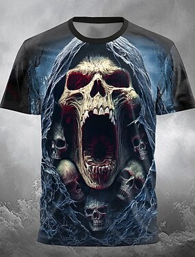 Homens A Morte 3D Ceifador Camiseta Manga Curta Camiseta Impressão 3D Gola Redonda Camisa Exagerado Designer Terror Festa Rua Feriado Preto 4 Preto 1 Preto 3 Verão Primavera Todas as Estações Roupa S
