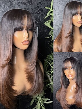 Cabelo Humano Fechamento 5x5 13x4 Lace Front Peruca Parte livre Com Franjas Cabelo Brasileiro Liso Marrom Natural Peruca 150% 180% Densidade do Cabelo com o cabelo do bebê Cabelo Ombre Riscas