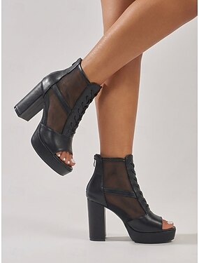Botas peep toe femininas com cadarço e detalhe em tela – salto alto elegante para casamentos no jardim, ocasiões especiais e trajes de madrinhas, design confortável e estiloso.