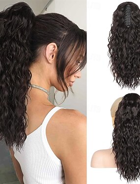Extensão de rabo de cavalo com presilha, longa, ondulada e cacheada, 45 cm (18 polegadas), em fibra sintética, com aparência natural e volumosa.