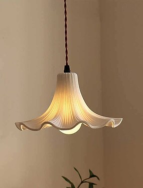 Luminária pendente de cerâmica com design floral, ajustável, ideal para ilha de cozinha, sala de jantar e quarto.