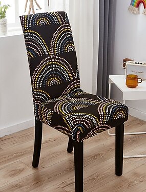 Capa para cadeira de jantar de Natal, capa de poliéster com estampa geométrica, protetor de cadeira elástico antiderrapante para casa ou festa