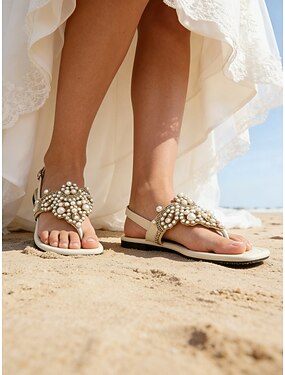 sandálias femininas estilo boho para casamento com flores de margarida e enfeites de pérolas – sapatos de noiva confortáveis para casamentos na praia e celebrações de verão