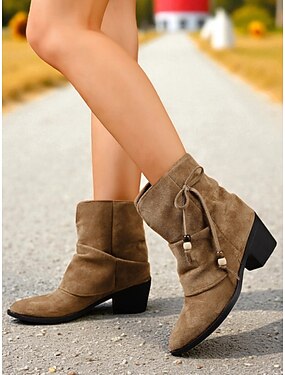 Mulheres Botas Sapatos vintage Escritório Trabalho Diário Botas Botas Tornozelo Presilha Salto de bloco Dedo Apontado Elegante Boêmia Vintage Caminhada Camursa Sintética zíper Preto Marron