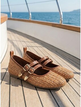 Sandálias rasteiras femininas sofisticadas em tecido marrom - respiráveis e com recortes, perfeitas para férias de luxo em cruzeiros e para relaxar no convés de iates. &roupas de resort de verão