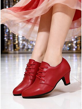 Sapatos profissionais femininos para dança latina - sapatos de salto médio com cadarço em couro sintético vermelho para prática de dança de salão, ideais para salsa e tango. Confortáveis e estáveis.