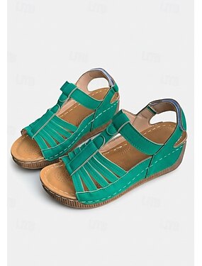 sandálias femininas verdes com tiras e fecho de velcro – calçados leves para caminhada, uso casual