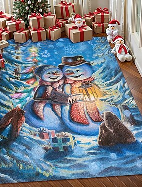 Tapete de Natal Casal de Bonecos de Neve para Sala e Quarto Tapete Macio Antiderrapante Lavável na Máquina em Faux Cashmere com Cena de Floresta de Inverno Bonecos de Neve Cantando por Dakota