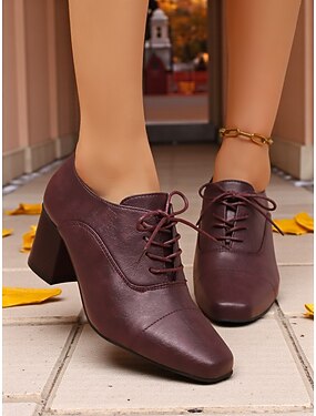 Botas femininas marrons de cano curto com cadarço e salto bloco – estilo clássico vintage dos anos 50, perfeitas para o escritório, passeios diários e eventos de outono.