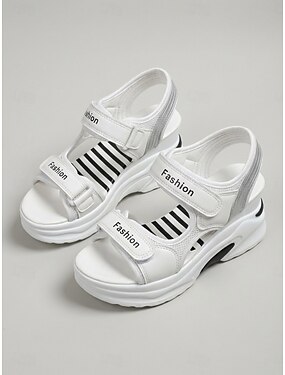 Sandálias femininas brancas de amarrar para caminhada – design vazado respirável, sandálias esportivas casuais com sola acolchoada para o verão e viagens. &roupa para uso diário