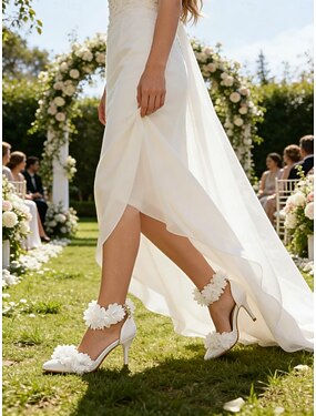 Sapatos de noiva estilo Mary Jane com salto bloco na cor marfim – um modelo elegante para casamentos na igreja.