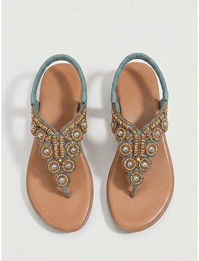 Sandálias femininas boêmias cor damasco com aplicações de pedras preciosas - tira em T com detalhes de joias, perfeitas para férias em resorts e casamentos na praia. &escapadelas tropicais