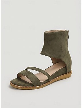 Sandálias femininas verde-oliva com tira no tornozelo – sandálias rasteiras boho de bico aberto, perfeitas para festivais de música e férias ao ar livre.