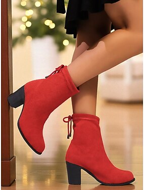 Botas femininas vermelhas de salto bloco – botinhas estilosas para o trabalho, encontros e moda natalina