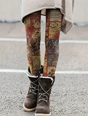 Mulheres Leggings Leggings aconchegantes Moda Roupa de rua Básico Comprimento total Cintura Alta Gráfico Abstrato Estampado Tosão Térmico / Quente Confortável Com Stretch Ao ar livre Férias Rua