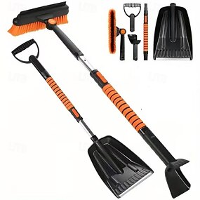 Conjunto de escova e raspador de neve de 41 polegadas para carros – raspador de gelo telescópico 5 em 1 com escova de borracha, cabo de espuma, cabeça giratória de 270° e pá – ferramenta universal