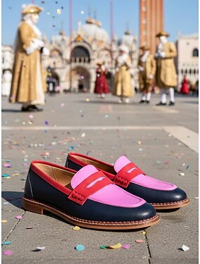 Mocassins Coloridos Femininos de Mardi Gras com Design Vermelho e Azul Ousado - Moda Confortável para Carnaval Eventos Festivos ao Ar Livre