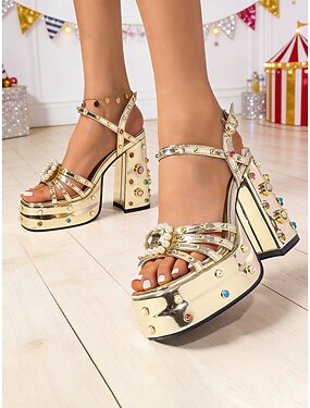 Sandálias femininas de salto alto com tiras e strass, modelo com tira que envolve o tornozelo e salto bloco, ideais para festas de coquetel e bailes de formatura. &eventos noturnos