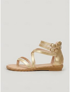 Sandálias rasteiras gladiadoras douradas femininas – sandálias de dedo com tiras para usar na praia, em resorts e durante as férias de verão.