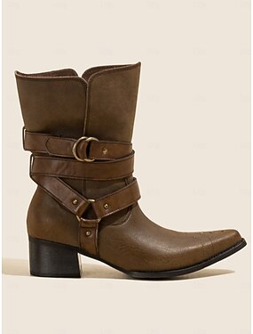 botas femininas estilo boêmio western marrom com tiras de fivela e salto grosso - perfeitas para uso casual e festivais