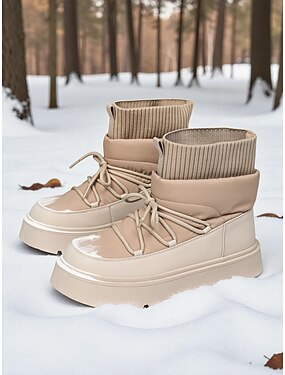 Botas de neve femininas de camurça sintética até o tornozelo – botas de inverno quentes com forro de pele e punho dobrável, calçados confortáveis e antiderrapantes para atividades ao ar livre