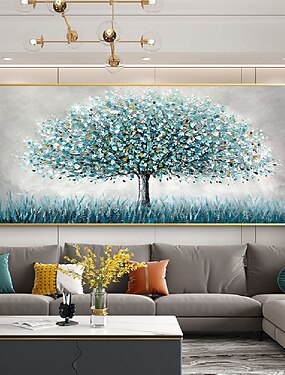 Mintura pinturas a óleo feitas à mão em tela decoração de arte de parede moderna árvore abstrata imagem de paisagem para decoração de casa rolada sem moldura pintura não esticada
