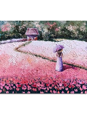 Pintura a óleo pintada à mão arte de parede pintada à mão paisagem abstrata e flores vermelhas pintura em tela decoração para casa decoração moldura esticada pronta para pendurar
