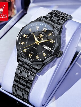 Relógio feminino de negócios da nova marca Olevs com visor luminoso, calendário e indicação do dia da semana, movimento mecânico totalmente automático, formato de losango cravejado de diamantes,