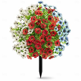 Topiaria artificial patriótica de 56 cm com estaca, decoração para o Dia da Memória de 4 de julho, comemoração do 250º aniversário dos EUA, esfera floral artificial vermelha, branca e azul resistente