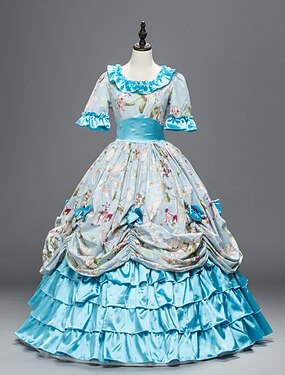 Vintage Rococó Vitoriano Maxi Vestidos Normal Julieta Princesa Noiva Pregueado Com Babados Princesa Decote Redondo Fantasia Mulheres Dia Das Bruxas Carnaval Baile de Máscaras Espetáculo Festa dia das