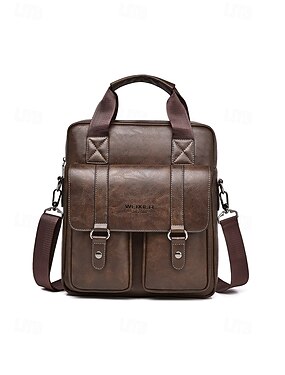 bolsa mensageiro masculina de couro sintético – bolsa de ombro vintage para negócios com alça ajustável e fivela, pasta profissional para escritório, trabalho e viagens