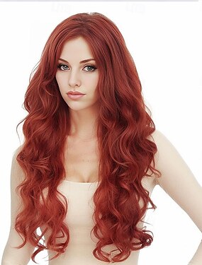 Peruca ruiva de 60 cm (24 polegadas) para mulheres, peruca longa ondulada vermelho acobreado, peruca sintética ruiva natural para cosplay, Halloween e uso diário.