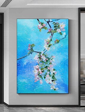 Pintura a óleo pintada à mão arte de parede pintada à mão flores abstratas pintura em tela decoração para casa decoração moldura esticada pronta para pendurar