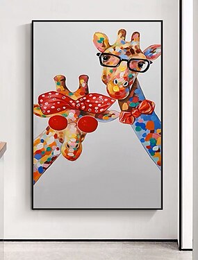 Confeccionada à Mão Pintura a Óleo Pintados à mão Vertical Animais Desenho Animado Moderno Tela enrolada (sem moldura)
