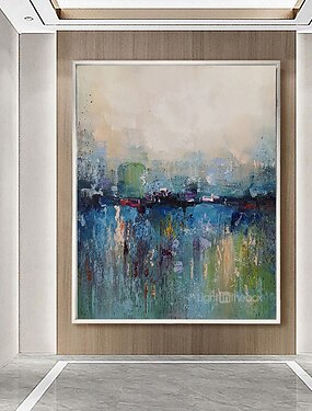 Pintura a óleo 100% artesanal arte de parede pintada à mão em tela pintura faca abstrata paisagem azul para decoração de casa decoração lona enrolada sem moldura não esticada
