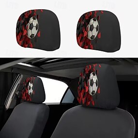 Conjunto de 2 capas para encosto de cabeça com estampa de futebol, decoração interna para carro, protetor de assento estiloso, fácil de instalar, ideal para viagens longas e deslocamentos urbanos,