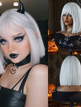 Perucas sintéticas Liso Reta natural Parte do meio Franja Lisa Peruca 10 polegadas Branco Cabelo Sintético 10 polegada Mulheres Macio Confortável Branco